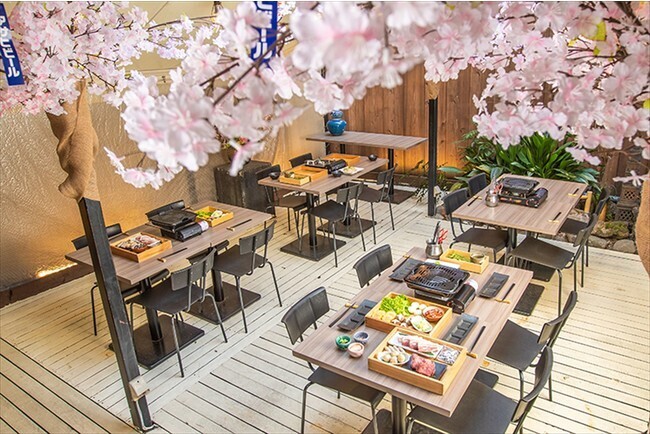 大人気の「こたつテラス」が、3月から春の装いで登場!桜のオブジェが飾られた春爛漫の桜ガーデンテラス席で、桜を愛でながらBBQをお楽しみいただけます。